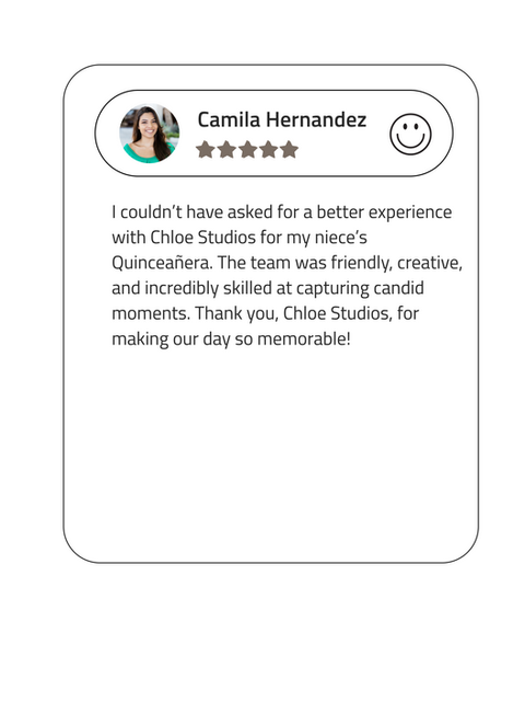 Wether you're having a Quince or a Sweet Sixteen, Chloe Studios, is committed to capturing the magic of your event with our professional Quinceañera Photography and videography services. From the elegant ceremony to the lively reception, our experienced team is dedicated to preserving every unforgettable moment of your Quince celebration. With an eye for detail and a passion for storytelling, we ensure that your Quinceañera photos and videos beautifully reflect the joy and significance of your event. Because Every Quince or Sweet Sixteen is Unique!